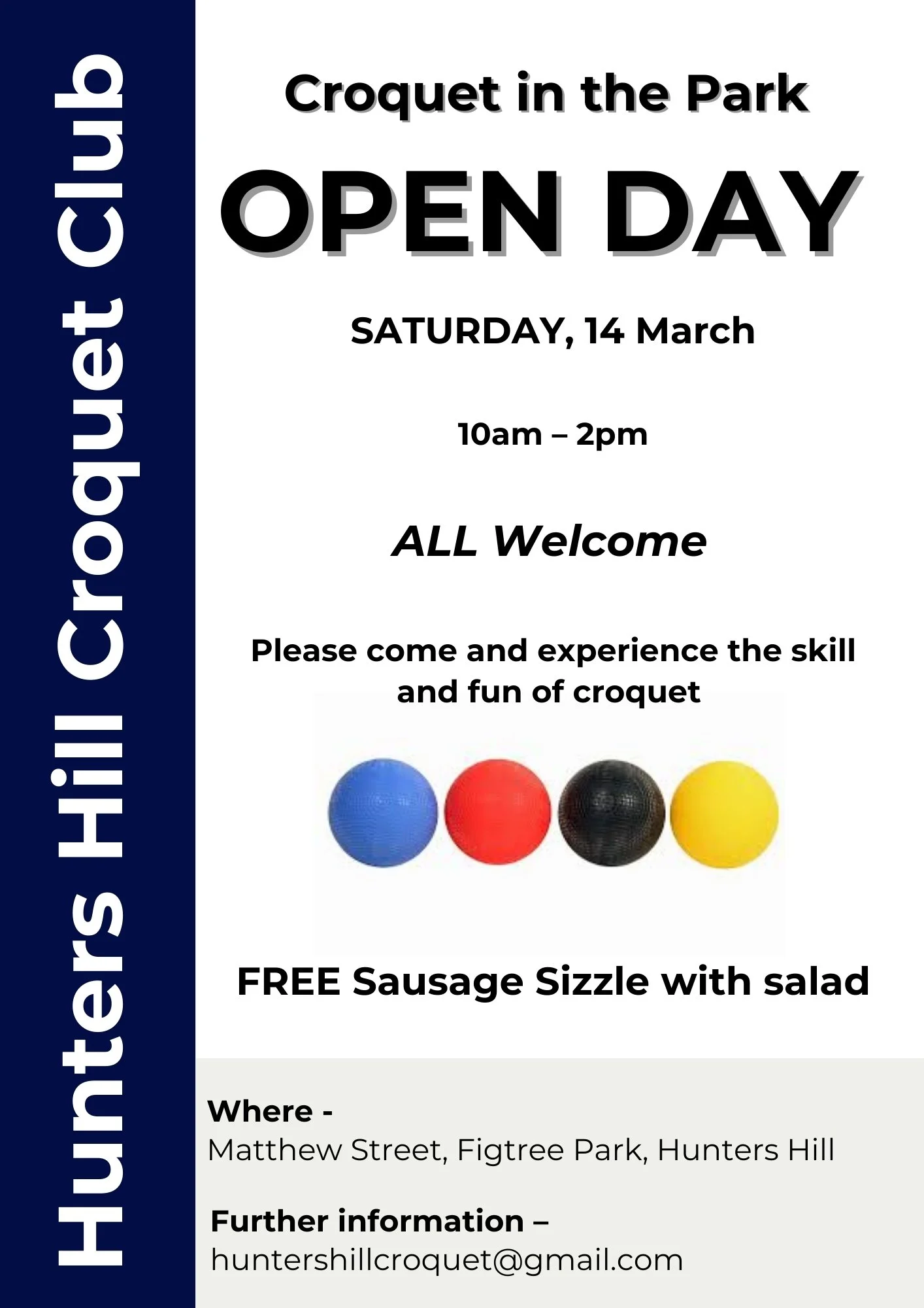 The Club’s Autumn Open Day and Senior’s Week Celebration will take place on March 14, from 10am - 2pm. Come along and check the sport out!! Chat with members and enjoy a sausage sizzle lunch!! See Below.